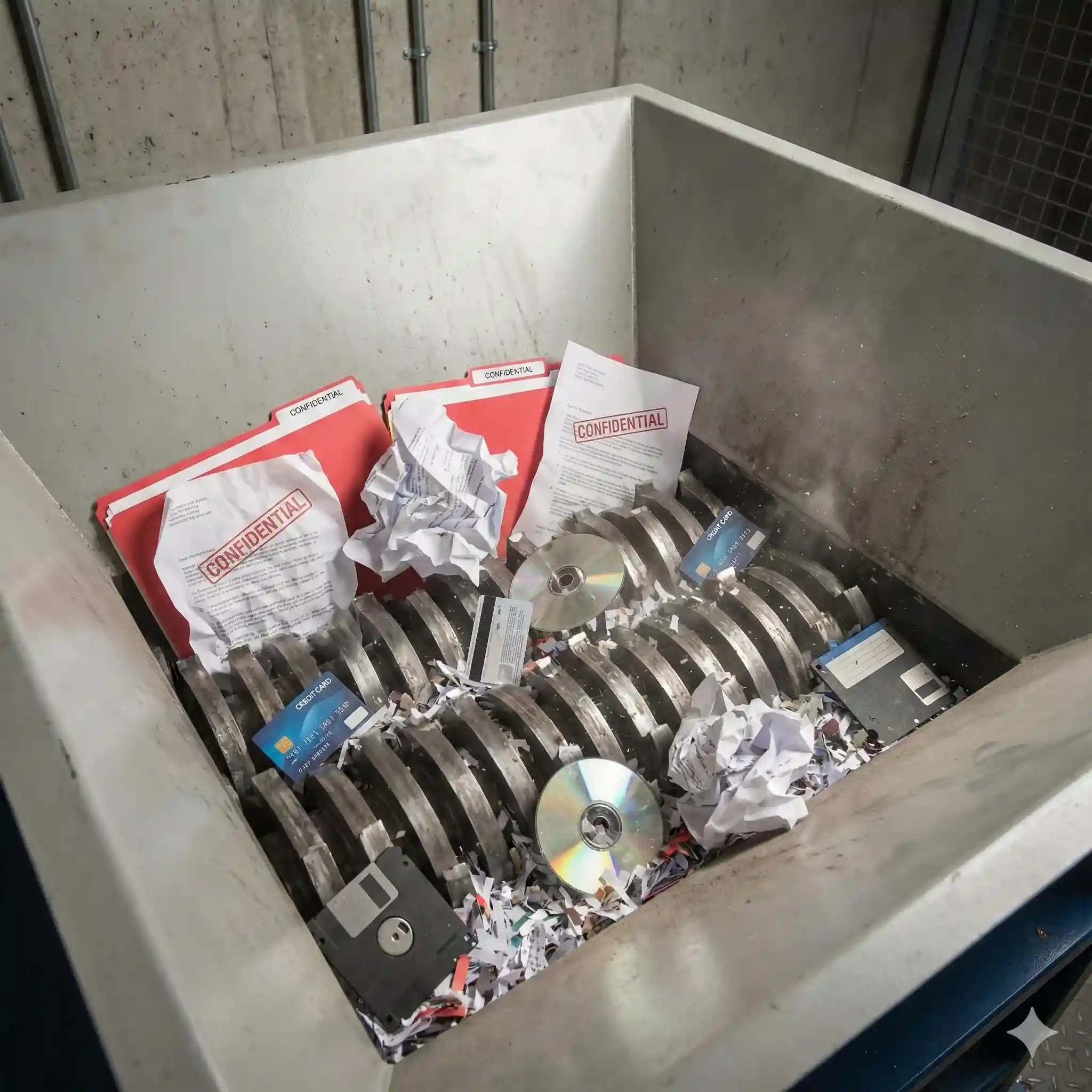 Why risk your private data travelling off-site? Our on-site data shredding service brings industrial-grade media destruction technology directly to your location. Watch every tape, CD, DVD, and USB drive being shredded instantly. Maximum security, total transparency, and complete peace of mind.