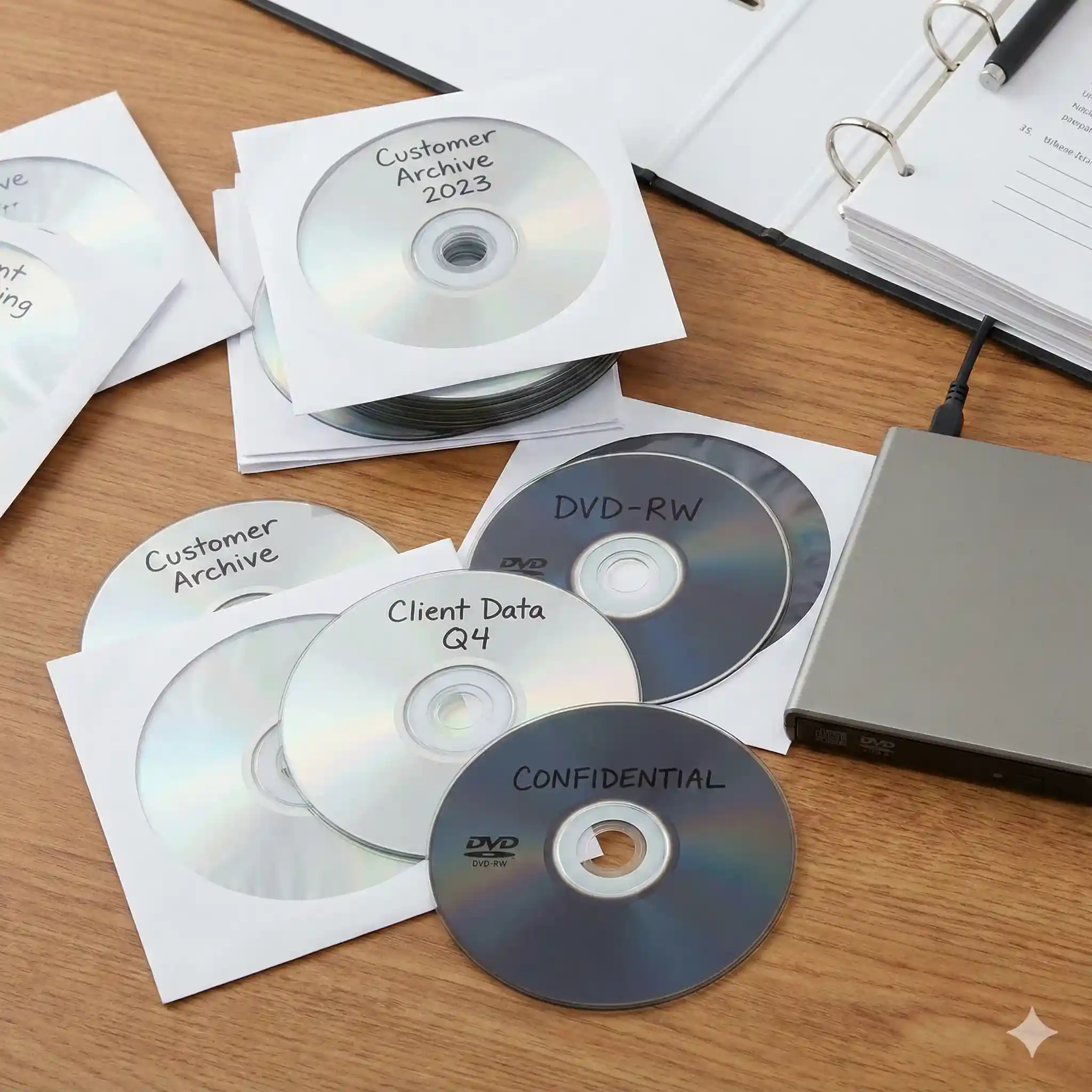 - DVDs and DVD-RWs with archived customer data.